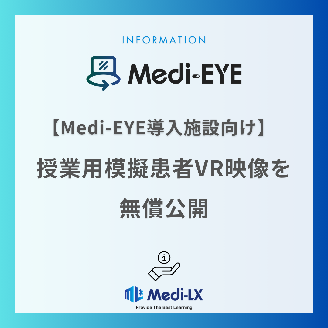 - 【For Medi-EYE Implementing Facilities】Free Release of Simulated Patient VR Videos (for Instructional Use) on YouTube
